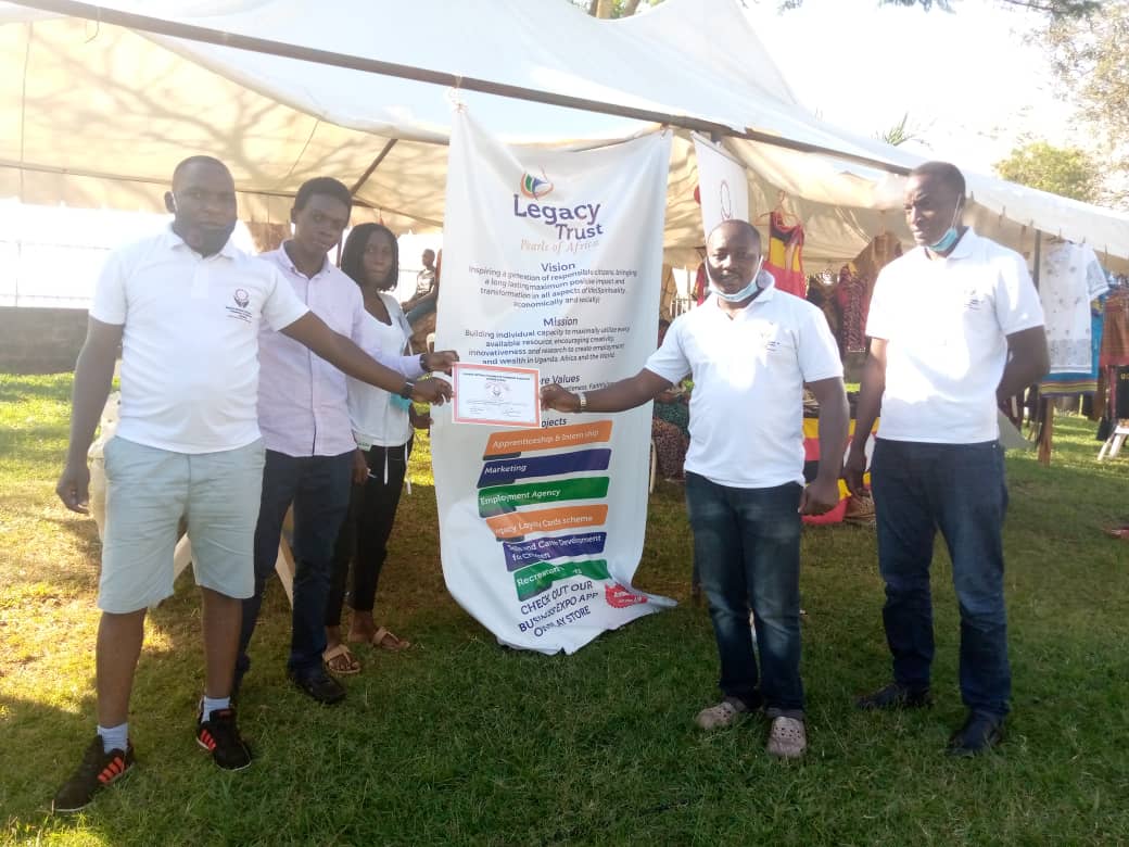 Legacy Trust Ltd receiving certificate from the Uganda National Chamber of Commerce and Industry Entebbe.